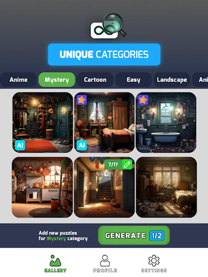 AI-powered game, generating new puzzles and hidden object challenges daily.