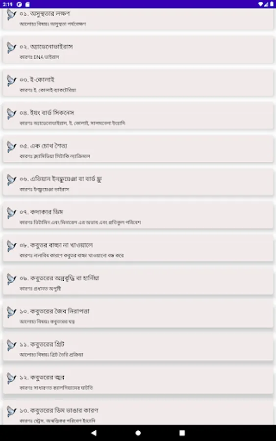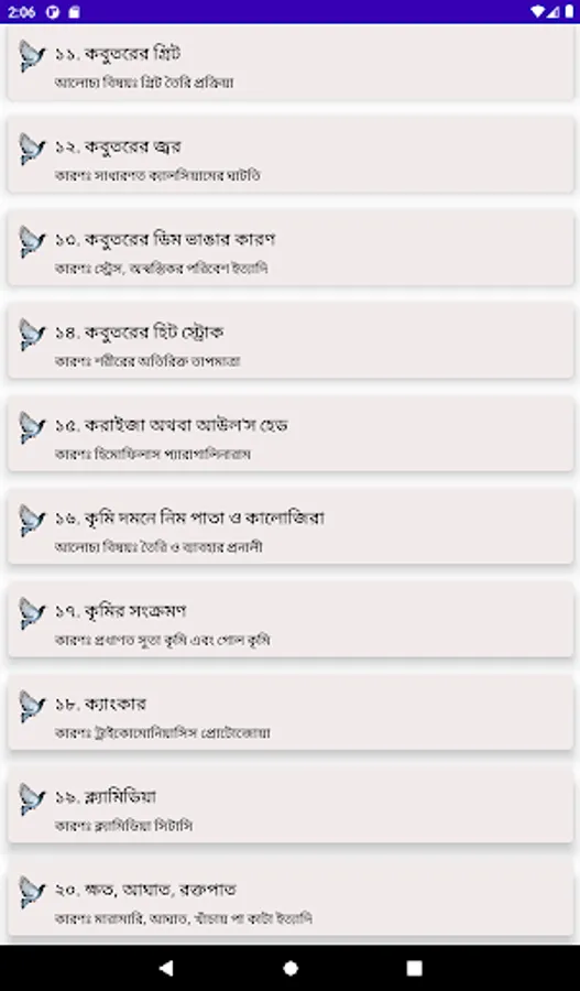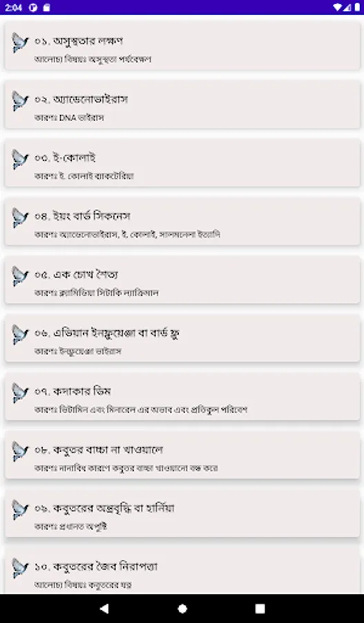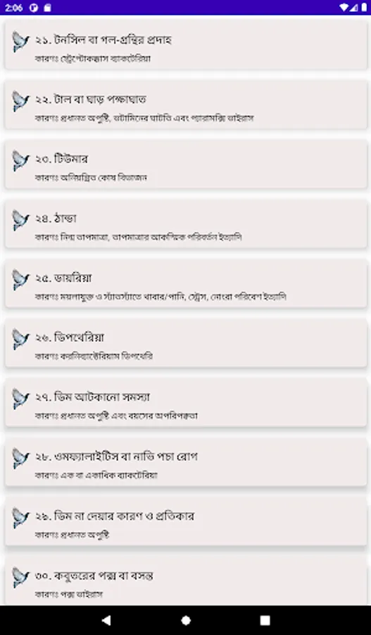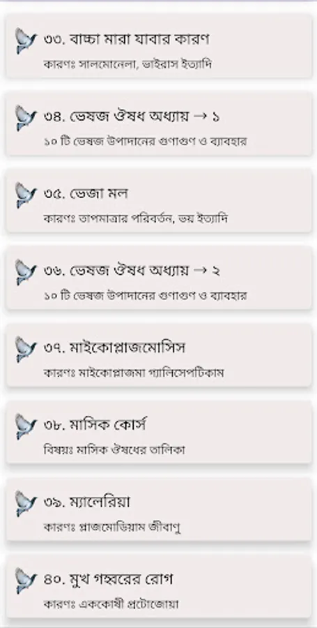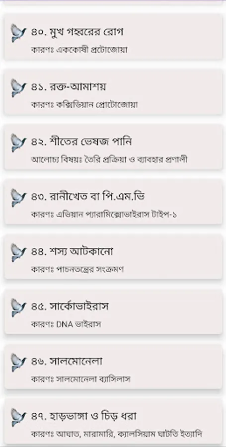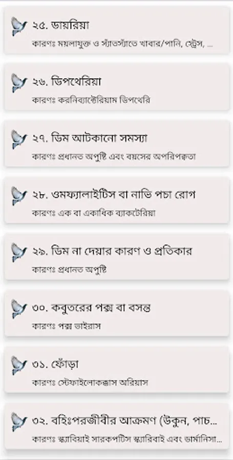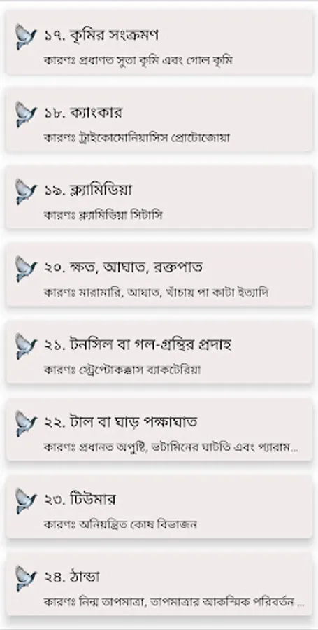 The following diseases are discussed in the app: