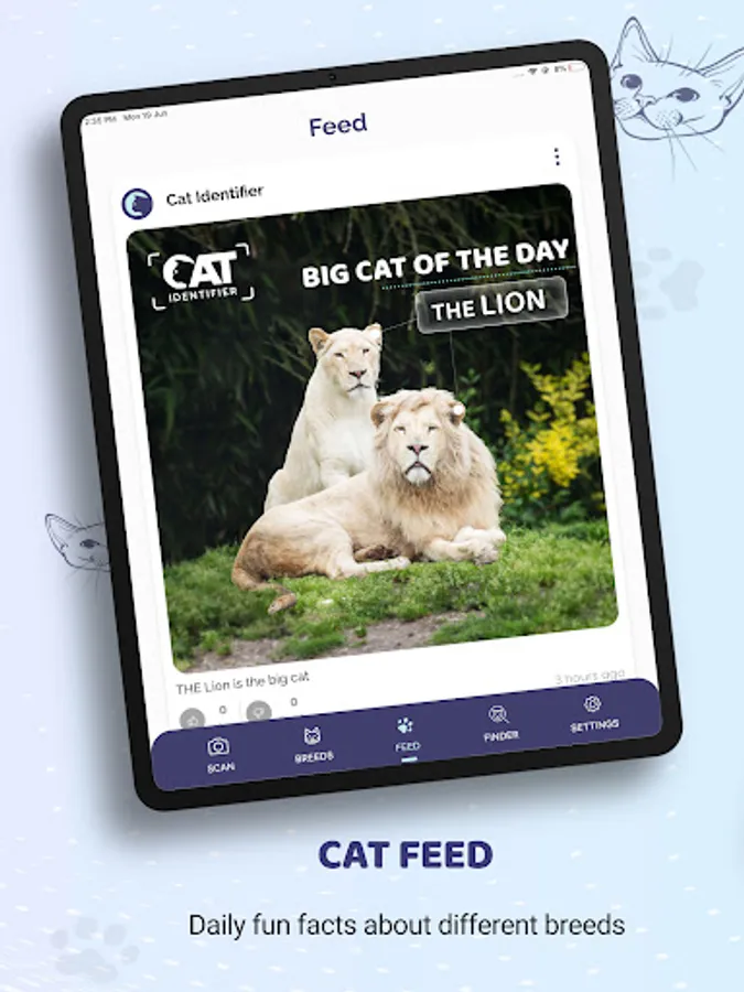 A delightful addition to our Cat Identifier app that keeps you engaged and entertained! Explore daily Cat predictions and fascinating fun facts about different breeds. Challenge yourself with guessing games, discover intriguing trivia, and share your favourites with friends.