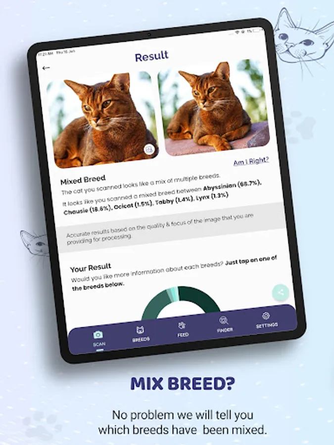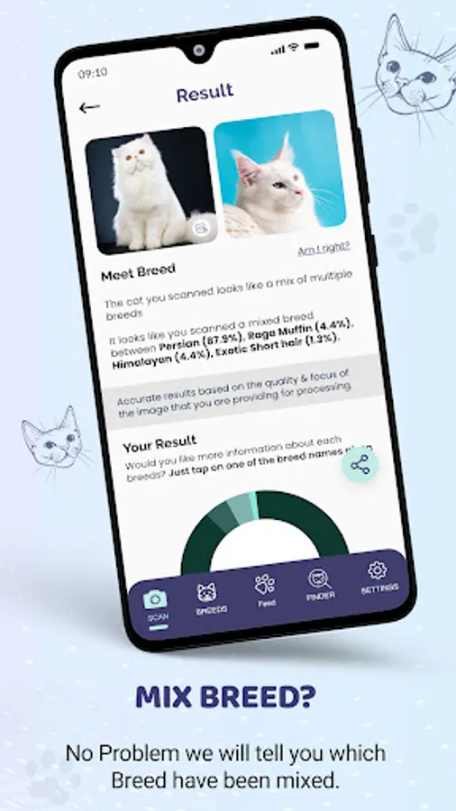 - Our AI algorithm analyses the image and compares it to our database of over 70+ Cat breeds.