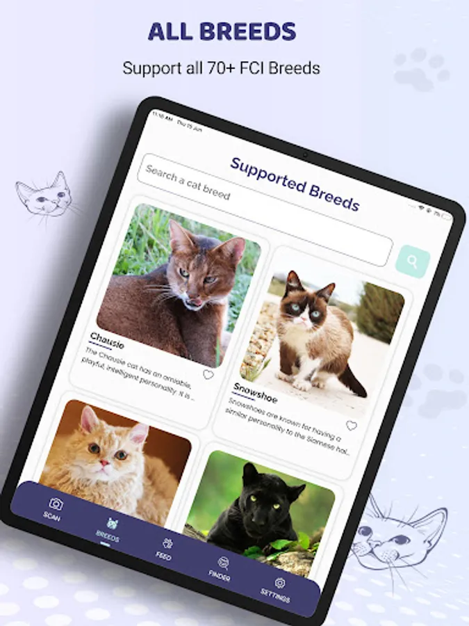 Help us improve our app by giving us feedback on your experience and suggesting or voting for unofficial cat breeds to add to our app in the future. Our app is constantly updated with new breeds and features, ensuring that you always have the most up-to-date information at your fingertips.