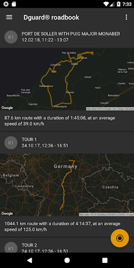 You can use the dguard® touring roadbook in the dguard® app to record your tours and share them with your friends. Saved routes are recorded together with the tour data and can then be personalised, shared via social media platforms or transmitted to mobile navigation devices as a GPX file.