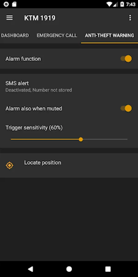 - Configuration of anti-theft warning (e.g. sensitivity and alarm settings)