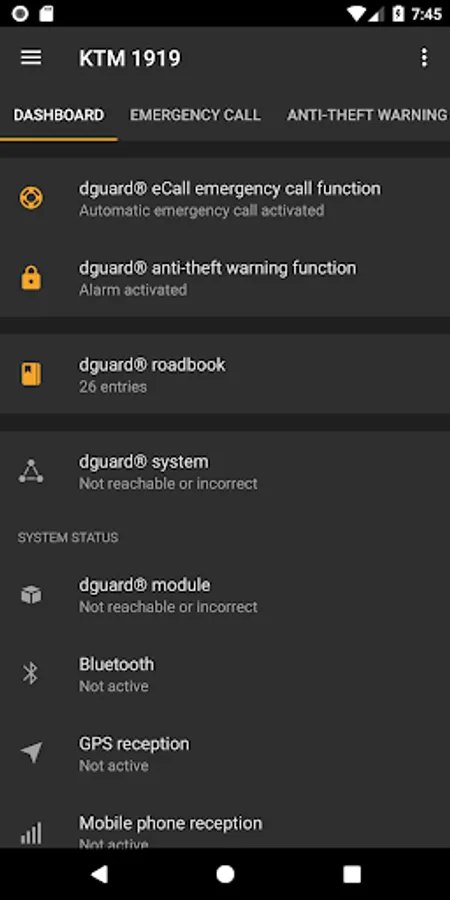 “Find my bike” is another useful function. You can use the dguard® app to view the position where your motorcycle’s ignition was last activated or deactivated.