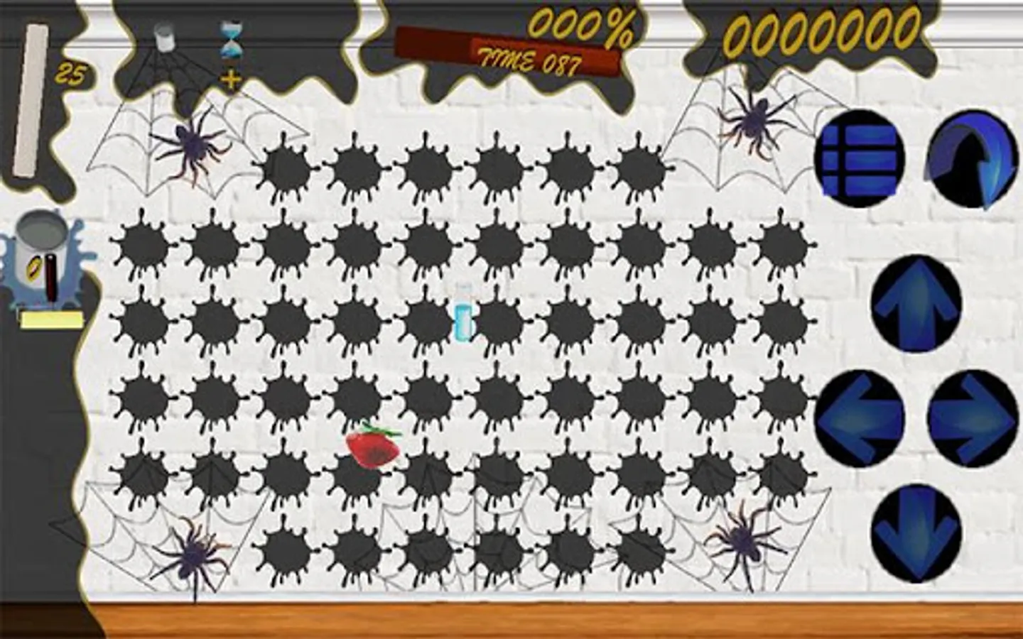 Paint the walls of the building, from the ceiling to the floor and clean the floors of the rest of the paint, avoiding the various and varied obstacles that you will encounter.