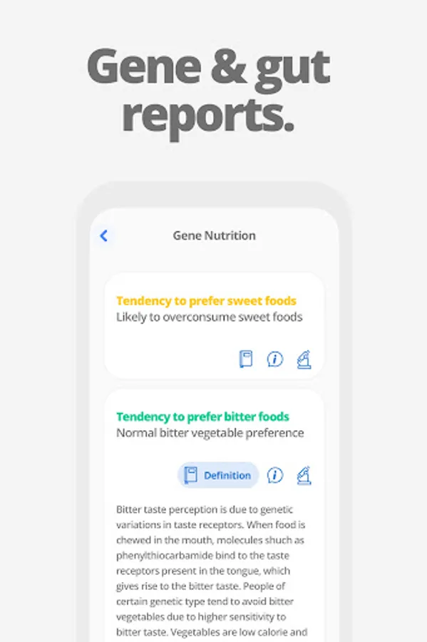 Detailed results of your gut & DNA tests that reveal your health risks, what foods you need to avoid, what foods work best for you, what exercises will help you burn fat, and the state of gut bacteria.