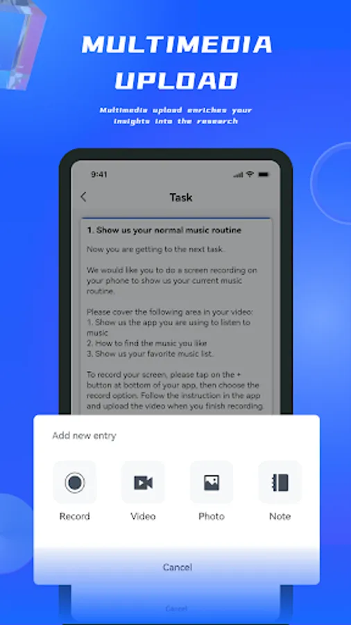 Researchers, Business Researchers, and other Professional Researchers alike. The easy-to-use mobile application is used by Research Participants to capture real-time responses in various formats, including videos, screen recording, photos and texts producing much more in-depth and spontaneous survey responses used for analytical and qualitative reviews providing valuable insights to Researchers and Businesses.