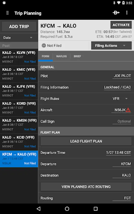 With Garmin Pilot, users can easily enter a flight plan. Pre-loaded forms make it quick to save and reuse data for frequently flown routes. And when the flight plan is ready, Garmin Pilot makes it simple to file, cancel or close the flight plan.
