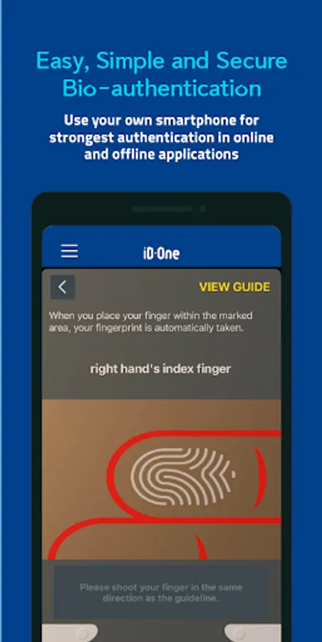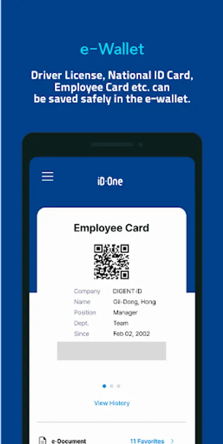 iD One uses ‘Real’ biometric authentication. By utilizing digital information generated from the user's fingerprint and face, which will be updated later, the process of au-thentication inherently prevents theft from others.