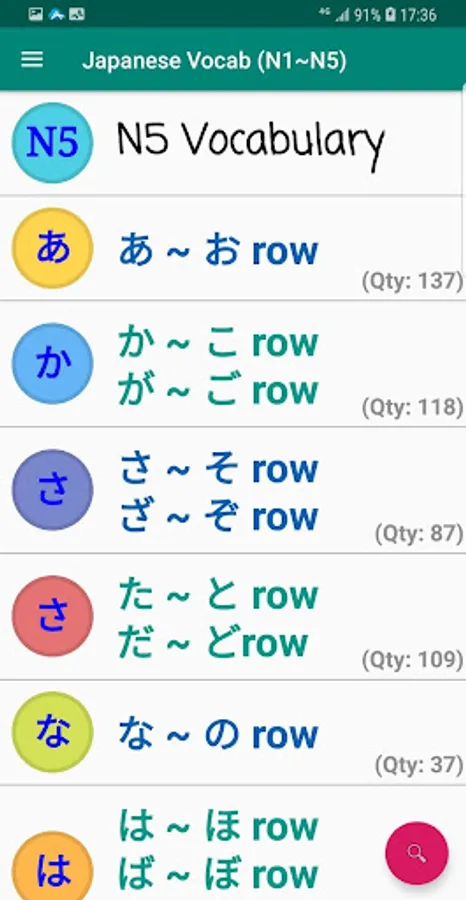 - Categorize vocab by JLPT level and the Hiragana/Katakana row that they belong to