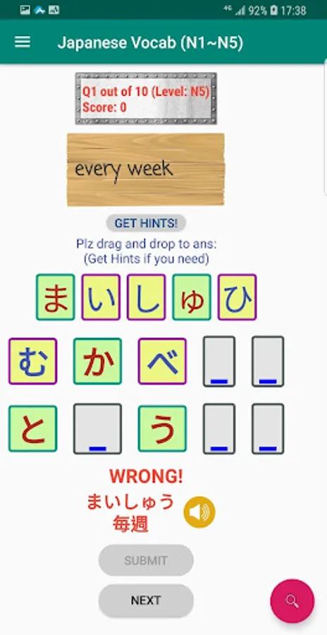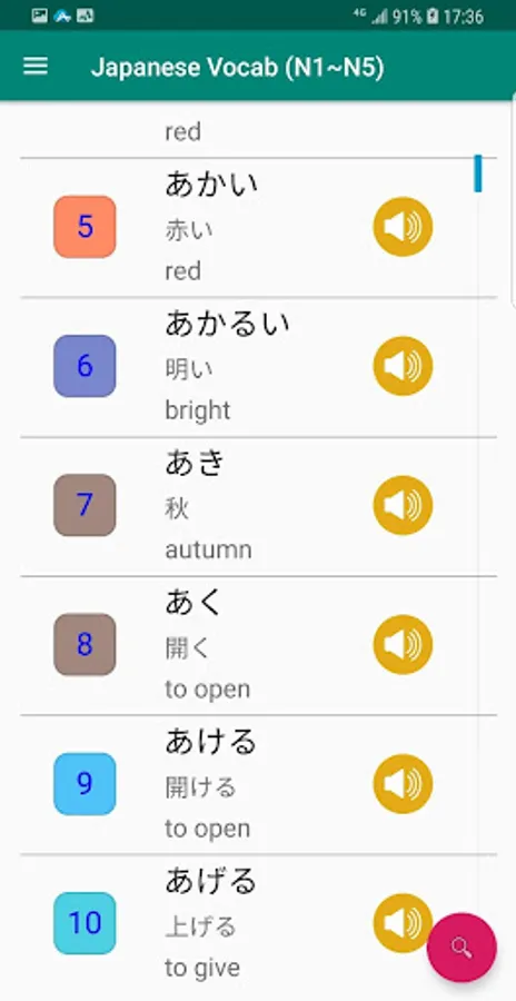 The vocabulary in this app are categorized according to the JLPT exam level and the Hiragana/Katakana row that they belong to. This will help to you to manage your progress of learning in a more flexible way.