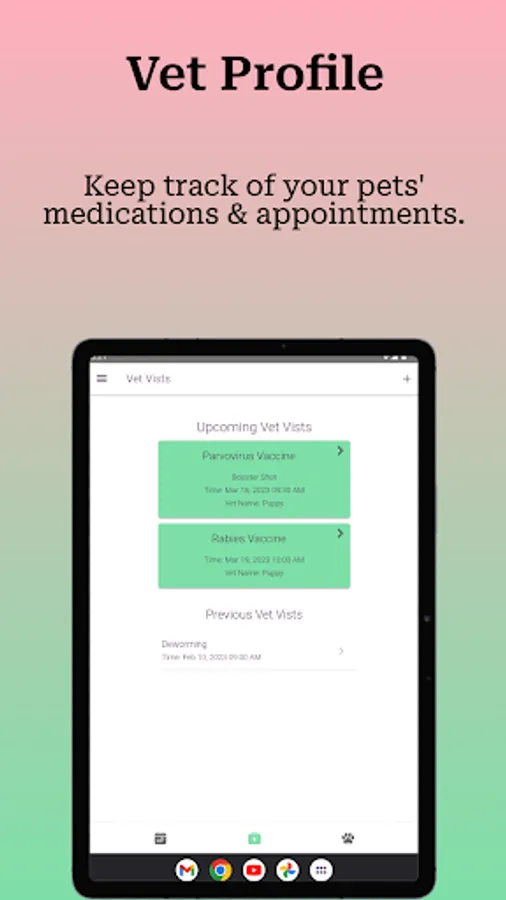 With our user-friendly app, you can easily manage their health and well-being requirements in one convenient place. From keeping track of vital information such as vaccinations and medical history; to customized reminders for feeding times, walks, vet appointments, and more, our app has got you covered!