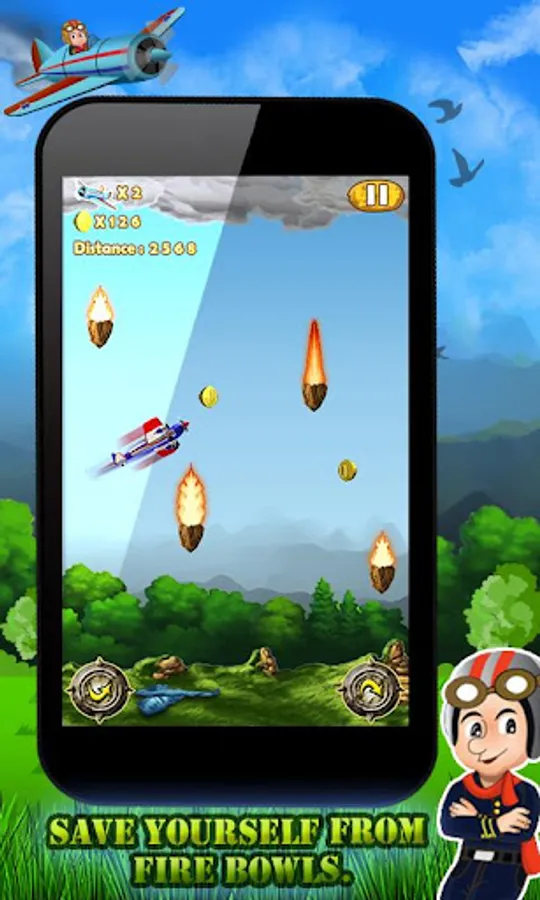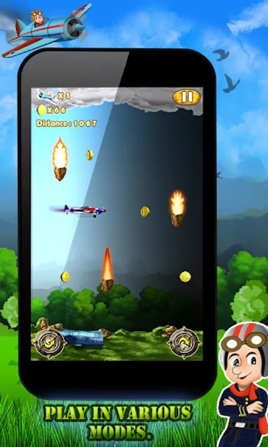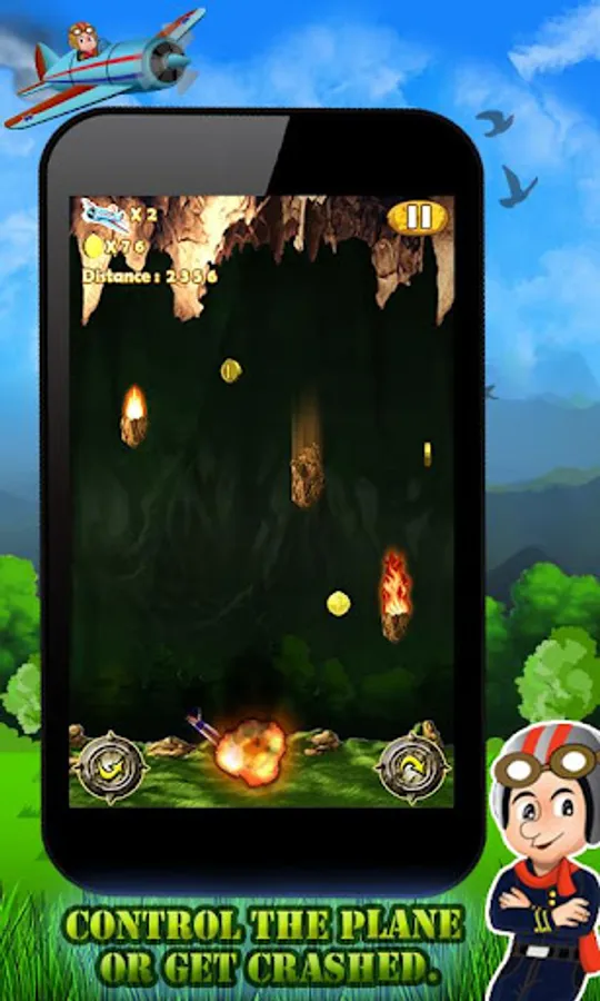 Crash Control is an action and adventurous flying game, featuring flying hero Jackson, awesome graphics and various backgrounds; where you can experience piloting in real world. Jackson is an ex squadron. The objective of this flying journey is to help him to perform stunts, grab coins and fly as far as possible without getting crashed. This game will test your piloting skill and your ability to become a true stunt pilot. You have to beware of the fire bowls coming in the way. Can you help him to fly and finish his mission in this flying game?