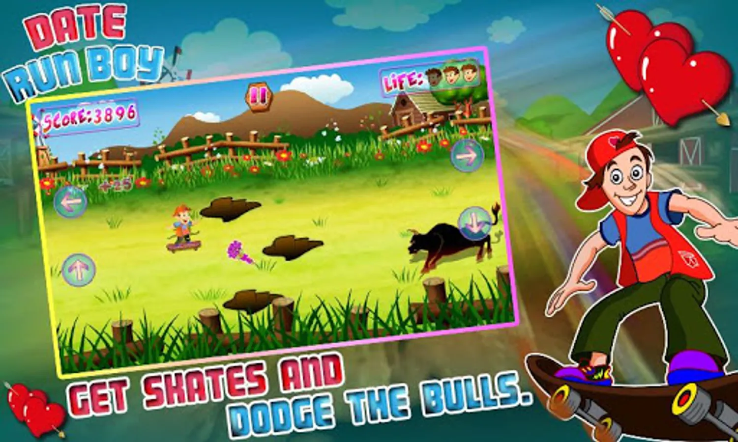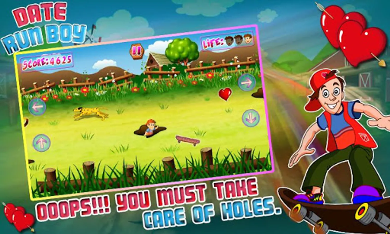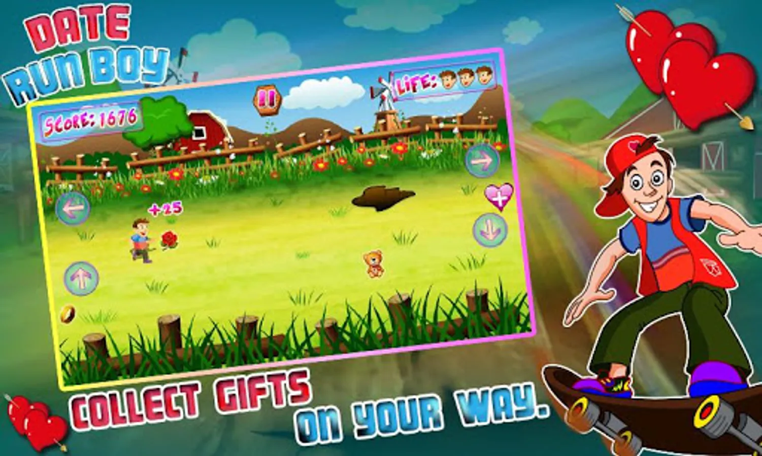 Date Run Boy is a simple and funny infinite running game. This valentine we are presenting the best running game for lovers. You are a handsome guy and you have to meet your beauty girl nearby town. Start running to her, collect gifts for her and dodge the obstacles coming in your way. You will get rewarded with accessories like cap, shoes and jackets after each particular distance. In your way you will get skates to run fast. Run for your date; avoid holes, dogs and bulls, as they are the great obstacles between you and your love. Don’t worry if you lose a life, there will health to put you again on the track, you just have to collect it while running. You have to try hard to meet your beloved. Have a lovely valentine day.