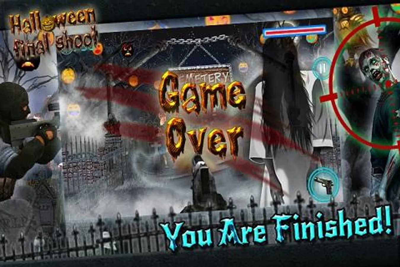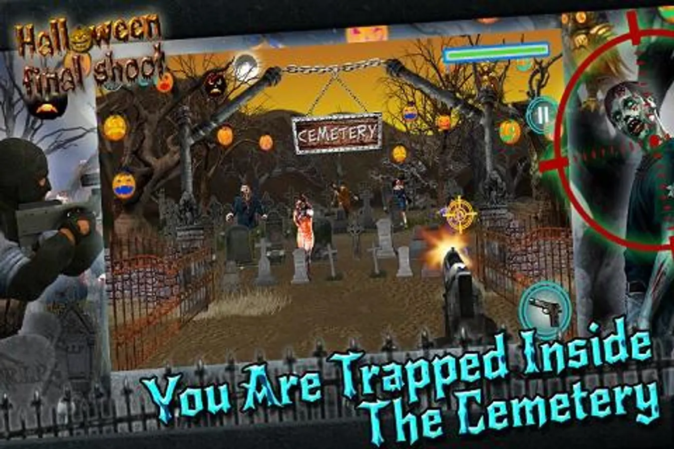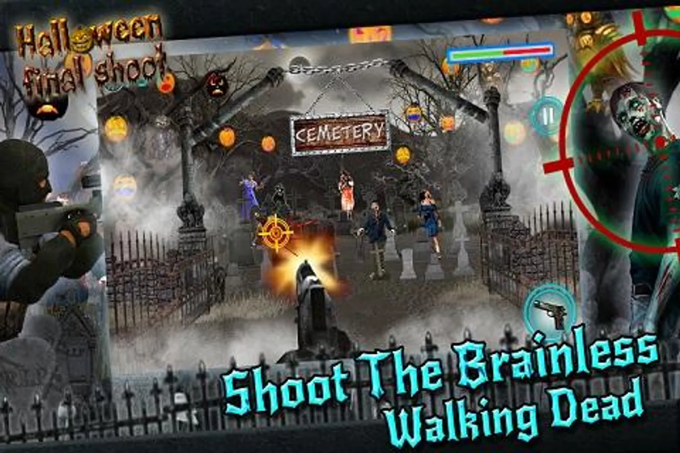 We are pleased to present you the most addicting shooting game Halloween Final Shoot. It is a classic FPS survival game where the main goal is to shoot at the demonic hordes of the brainless walking dead. You are trapped inside the cemetery, where these brain eating monsters live, you have nowhere to run and cannot be released. Dead is rising gradually! Hiding and waiting for death is not the solution. The only way left for you is to take up your weapon and kill these undead creatures. Show your real sniper shooter skills; otherwise this will be the day of dead for you. There are various missions for you to complete! Go and target all of the zombies who will make the land a zombie apocalypse.