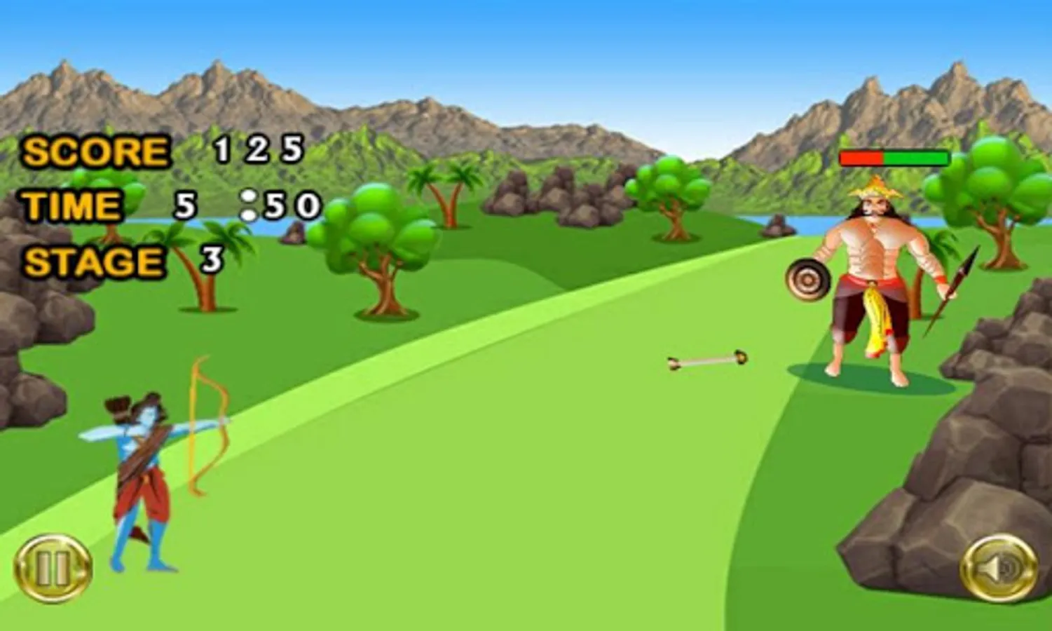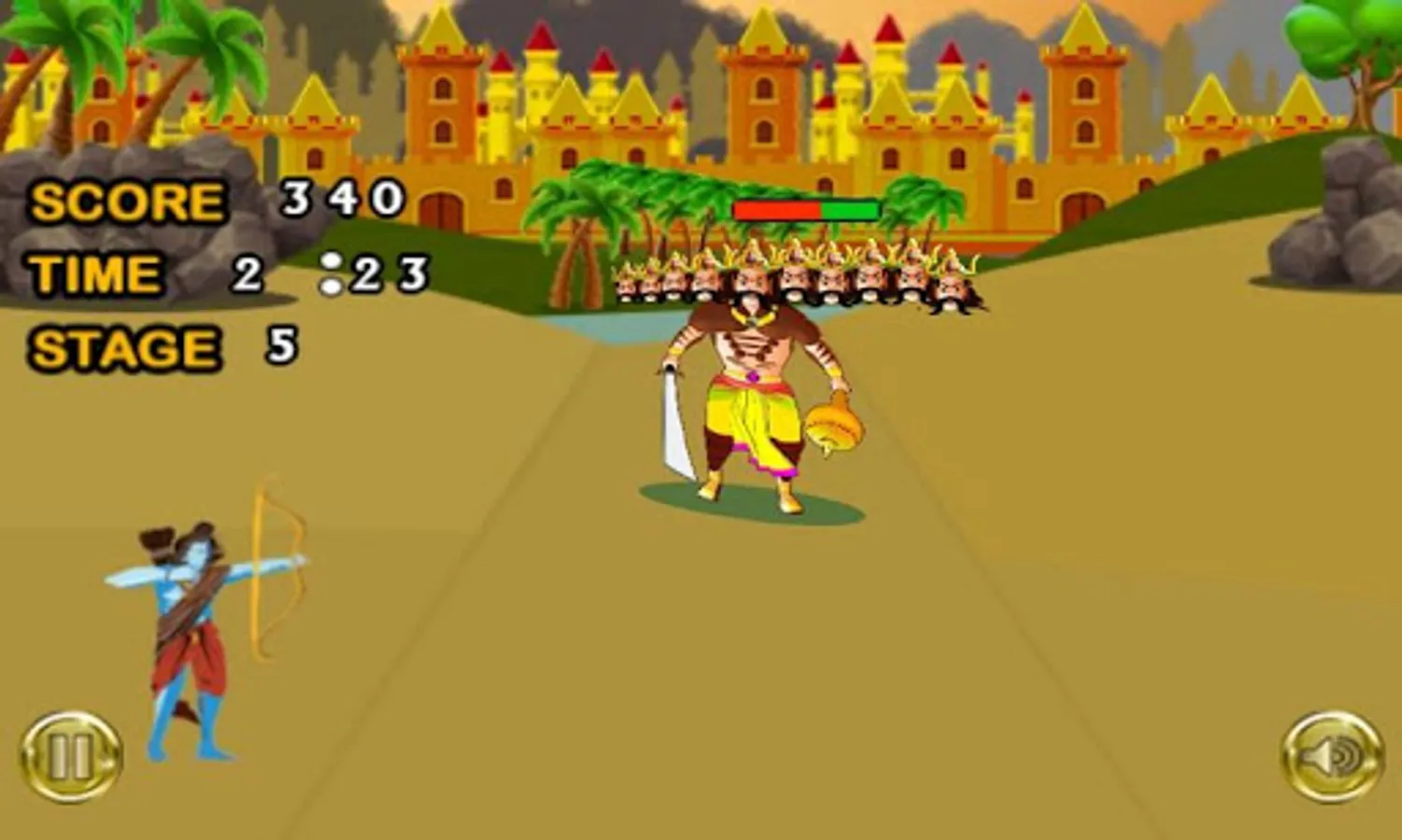 Lanka Vijay - The Final War is a mythological action game. There are 5 levels in this game. You have to win in each level to unlock successive level. You have to play as lord Rama, in each level you have to kill demons and a member of Ravana’s family. Surpankha, Meghnath, Kumbhakarna and Ravana are the devils in the game to shoot. You have unlimited arrows but limited time to kill the enemies. Game controls are very easy, just aim the target and shoot. Download now this epic action game. May the victory of Good over Evil inspire you towards your own victories. Wishing you all a very Happy Vijaya Dashami.