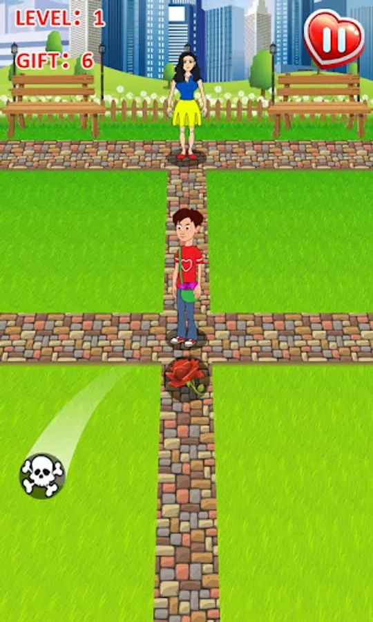 Explore the romantic world of dating with Valentine Flirt Boy. In this strategic challenging game you have to play as a flirt boy. All your girls arrived at the same place and now you have to manage them all at the same time. You have a bunch of gifts and a funny skull in your bag; of course your friend kept in your bag. You have to give the gifts to your girls not to surprise her with the skull. Throw the skull in other direction. Make sure you pick out the perfect present for her and throw it in right direction i.e. in the girl’s direction. This romantic love game has 10 wonderful challenging levels. Each level has different target and different number of girls to give the gifts. Accept the challenge, get your flirt on and be the best flirt boy of the town.