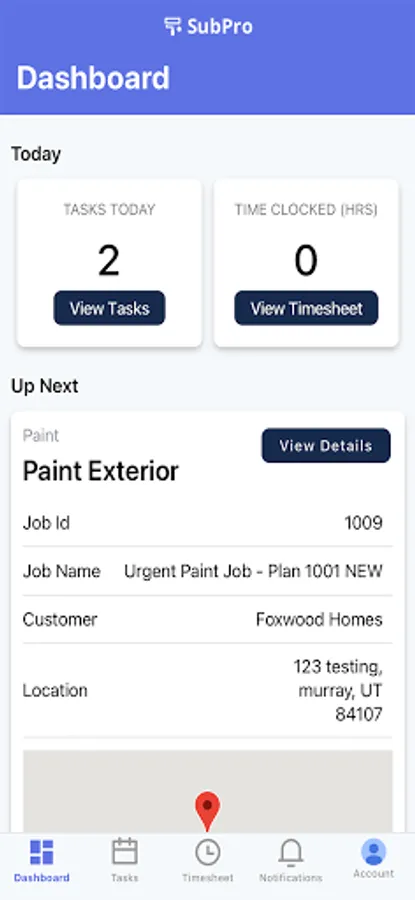 This app is the mobile app companion to SubPro. This app allows you to access your jobs, tasks, and timesheet. Easily add photos and files to your tasks along with any necessary notes. In addition, easily see which tasks need to be completed and clock in and out of the task.
