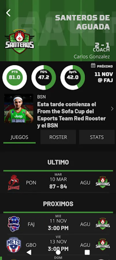 The official app for "Baloncesto Superior Nacional" gives you direct access to news, live results, custom alerts and other great features regarding all aspects of the league and its teams.