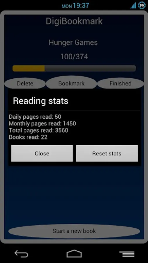 Started a new book? Enter the book's name into DigiBookmark app and each time you finish reading click on the "bookmark" button to save your current page position. When you finish your book then it will be saved in your finished books list.