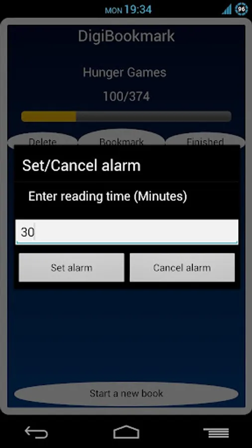In addition, you can set a reading time by setting an alarm inside the app that notifies you when time's up.