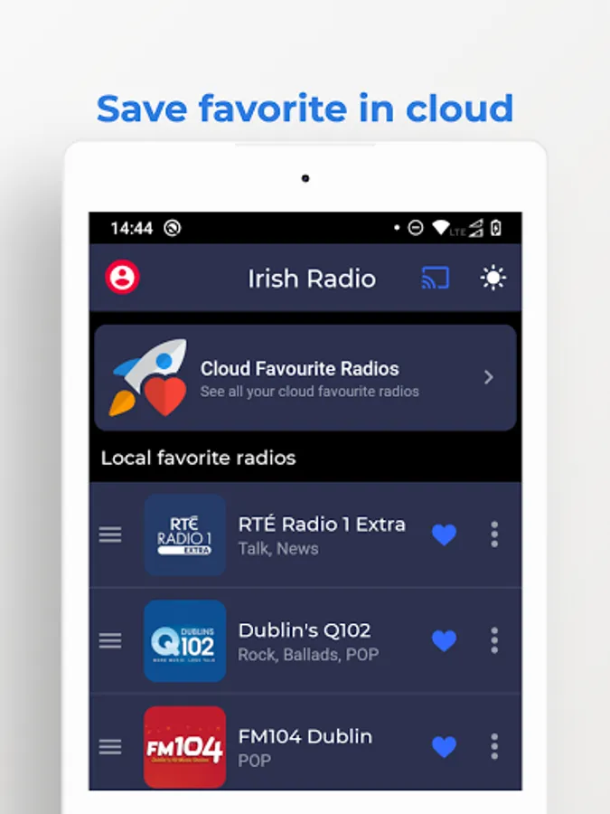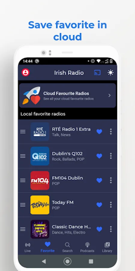 But that's not all - Radio Ireland goes beyond just radio streaming. Users can also enjoy popular podcasts directly within the app, allowing them to stay up-to-date with all the latest trends and discussions. Creating a personalized list of favorite radio stations is a breeze, and users can even save their favorites in the cloud for ease of access across multiple devices.
