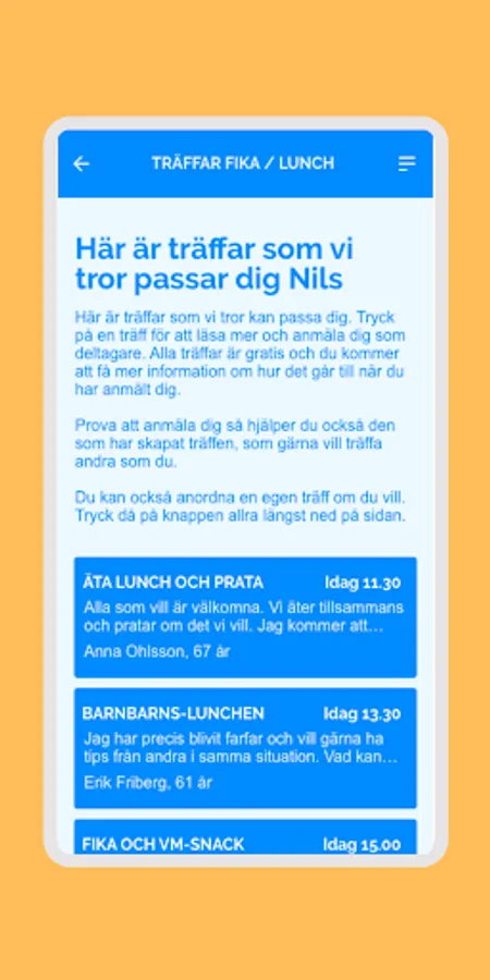 In 2020, we won, in competition with over 50 other companies and organizations, Nordea's and Breakit's competition for the best solution for preventing and breaking isolation and exclusion among the elderly.