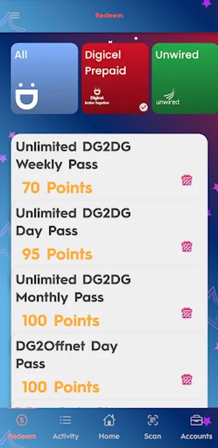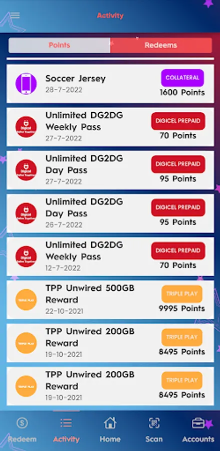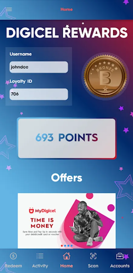 Active Digicel Customers will receive points on every opt-in with our GSM, Unwired, Sky, or Triple Play Plans. Bonus points will be added at the end of each month based on Customer's age on our Network (how many years they have been with Digicel).