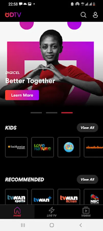The DigicelTV App is a for Live TV and Video On Demand content anytime, anywhere on your mobile device! Watch the best in sports, top local and international events, news, drama series, movies and programs wherever you are.