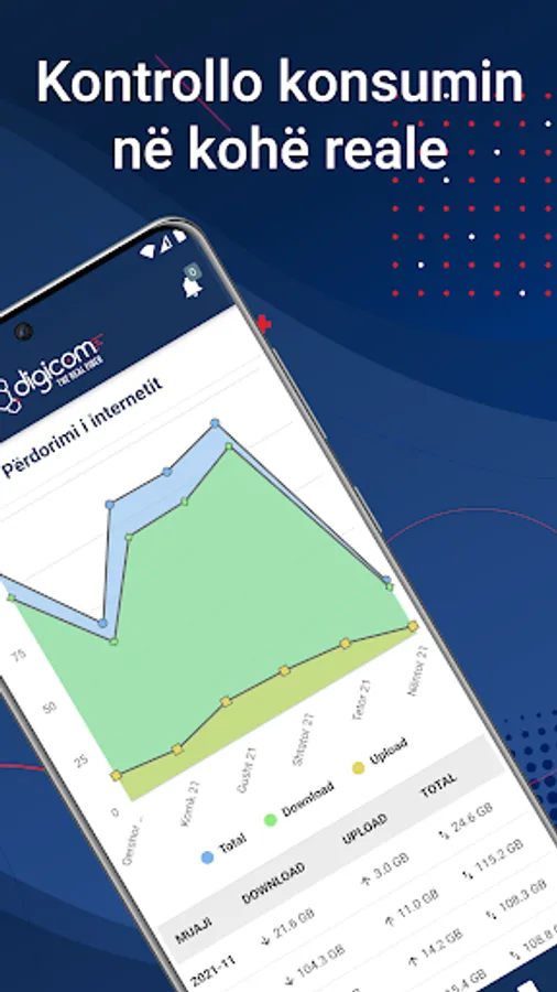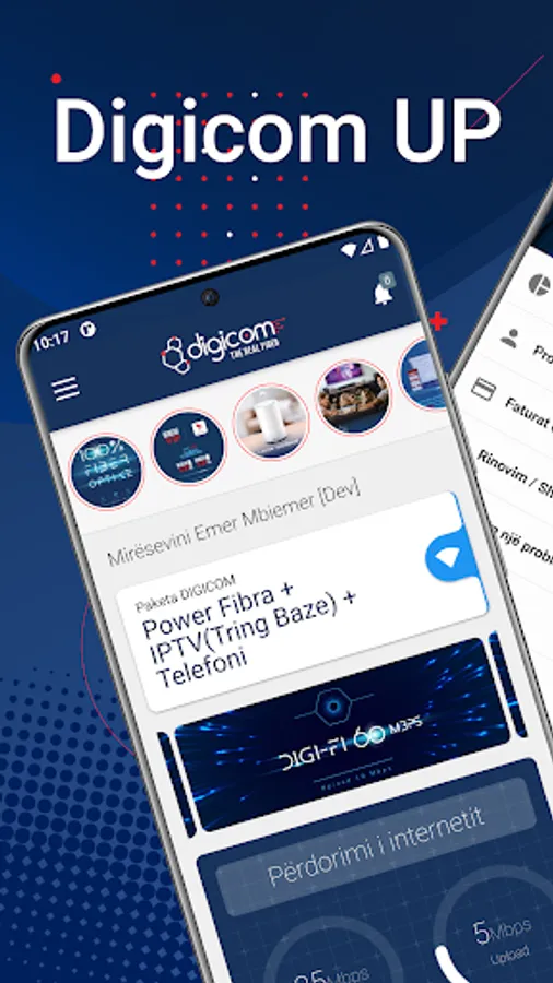 Aplikacioni Digicom UP ndihmon me një mori informacionesh dhe zgjidhjesh në kohë reale, të personalizuara vetëm për ty. Me pak klikime, ti mund të kesh akses në shumë opsione si: