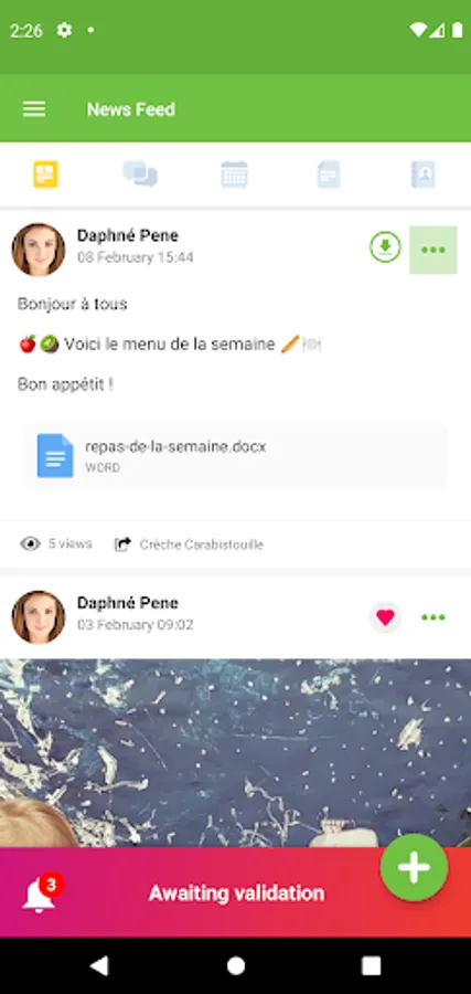 Parents can find various content posted by the supervising teams: useful information, menus, calendar, appointments, photos, videos, in short everything that allows them to better understand the educational project or to stay informed during a discovery stay.