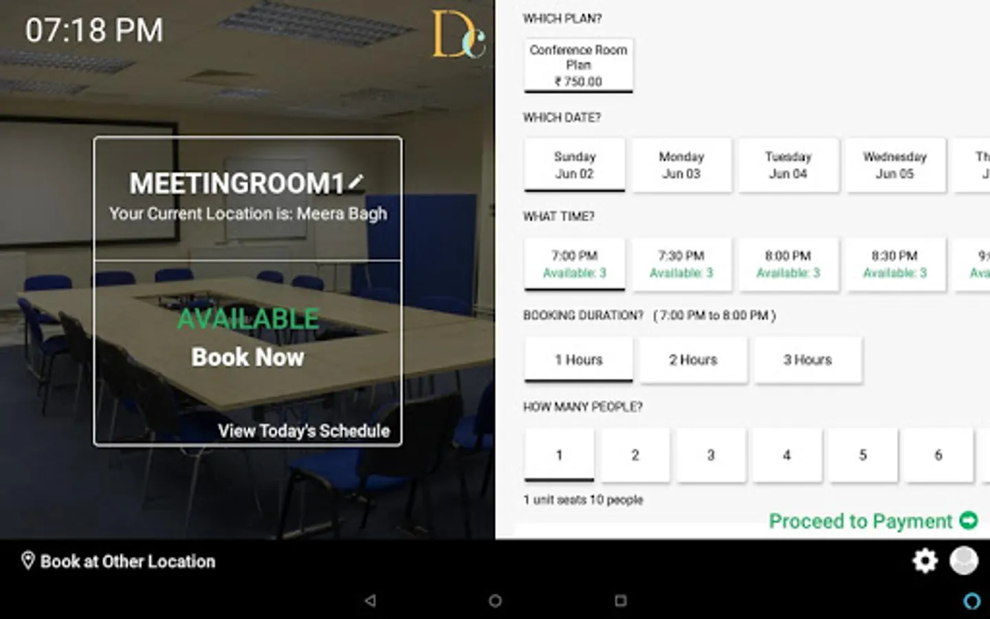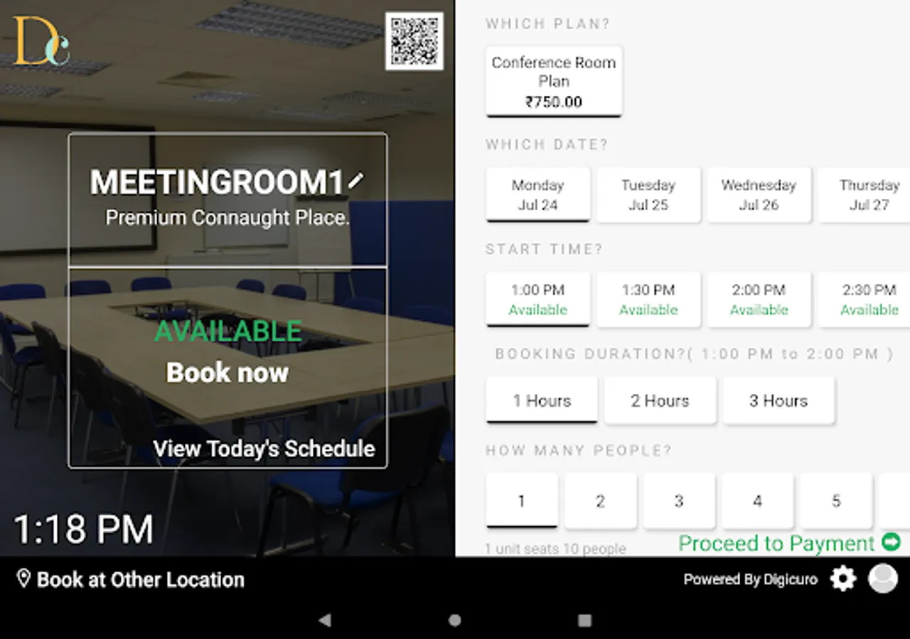 Install it on any tablet and display it outside your meeting/conference rooms. It acts a beautiful meeting room display and real time availability calendar as well as a real time booking tool.