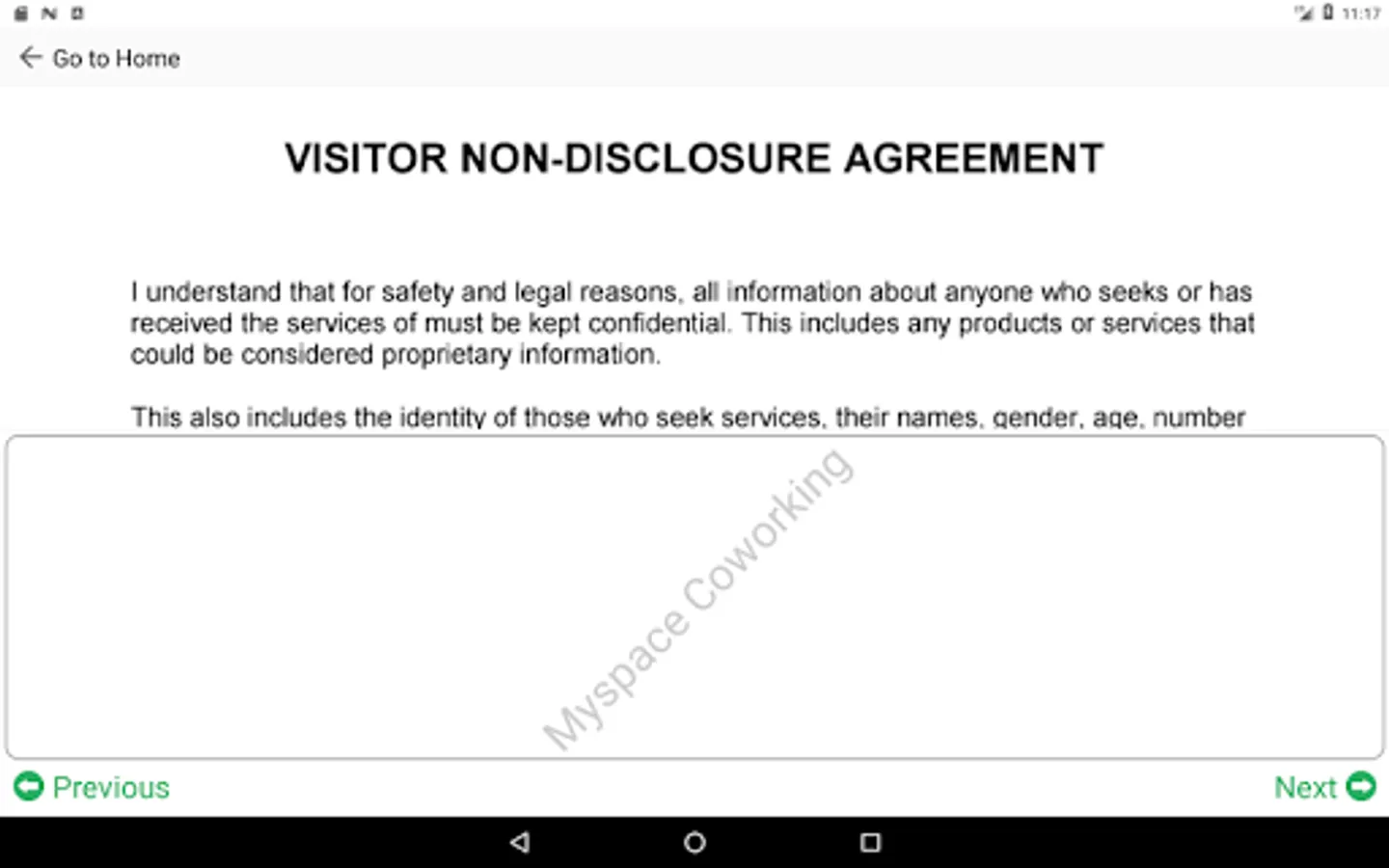 - Device instead of some register on your front desk. A solution that is completely customisable and lets you showcase your brand to your guests. Complete visitor data secured with passcode.