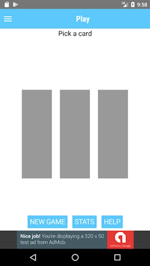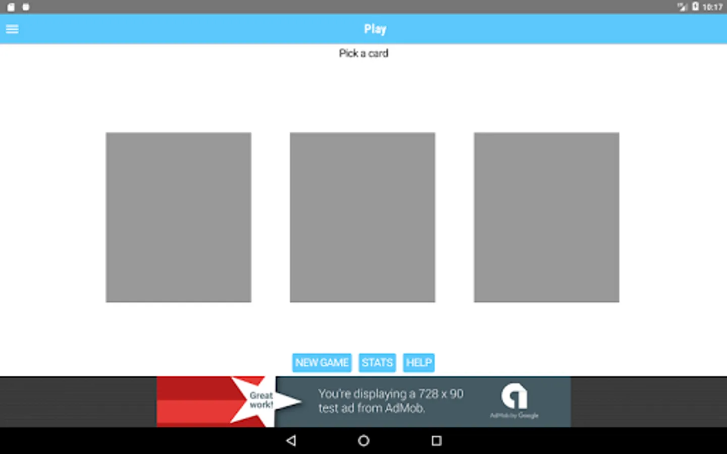 You have three face down (gray) cards. The objective of the game is to guess which of the cards is the green card. Flow of the game: