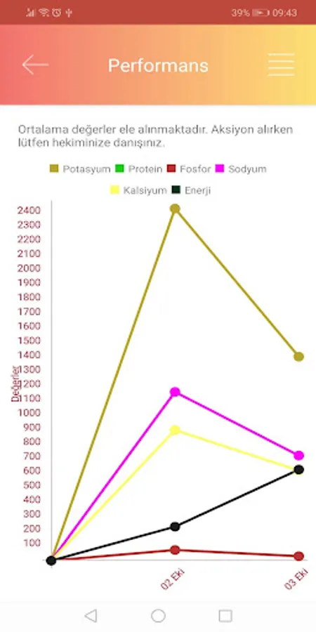 When you receive a nutritional value missing or excess to be warned by the application and proper nutrition