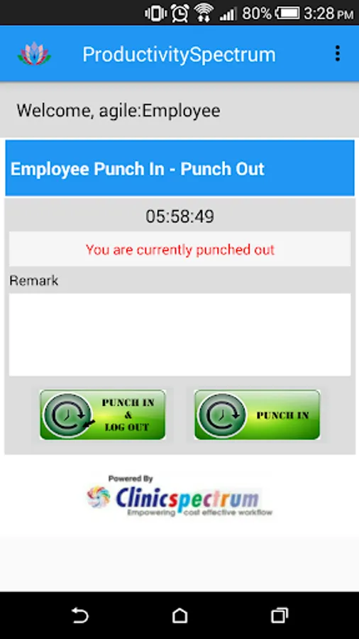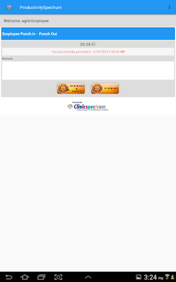 ProductivitySpectrum is providing functionality of “Time Clock” and “Monitoring”.