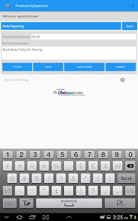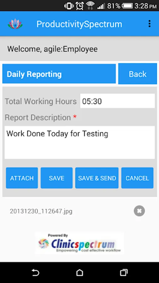 ProductivitySpectrum with Time Clock measures employee's working hours from Punch In Time to Punch Out Time as per time zone defined. Also, included Attachment functionality in Daily Reporting where employee can attach files and send report. Applied IP Enforcement for security measures as if defined network IP and added then it will allow only from defined network IP.
