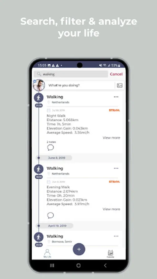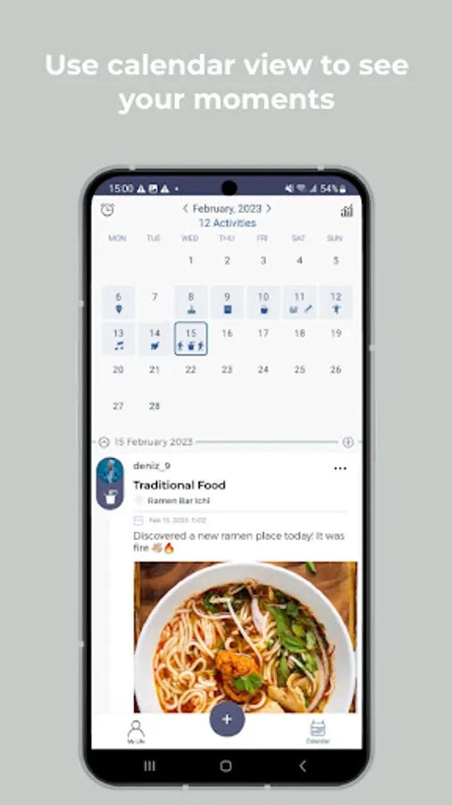 - Use calendar journal to see your moments daily and create activity memories easily