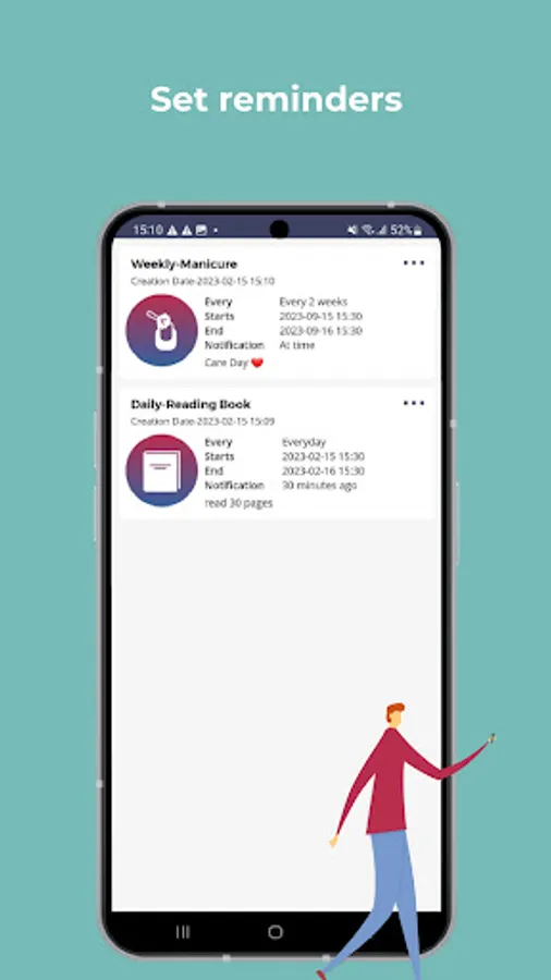 - Create reminders for any kind of activities
