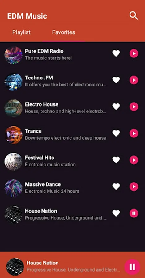 Enjoy our stations with different genres of electronic music such as dance, techno, trance, and more.
