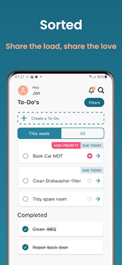 All your household admin - to-do lists, bills, warranties, insurance, contracts - is on your phone. All in one place, ready for whenever you need them.
