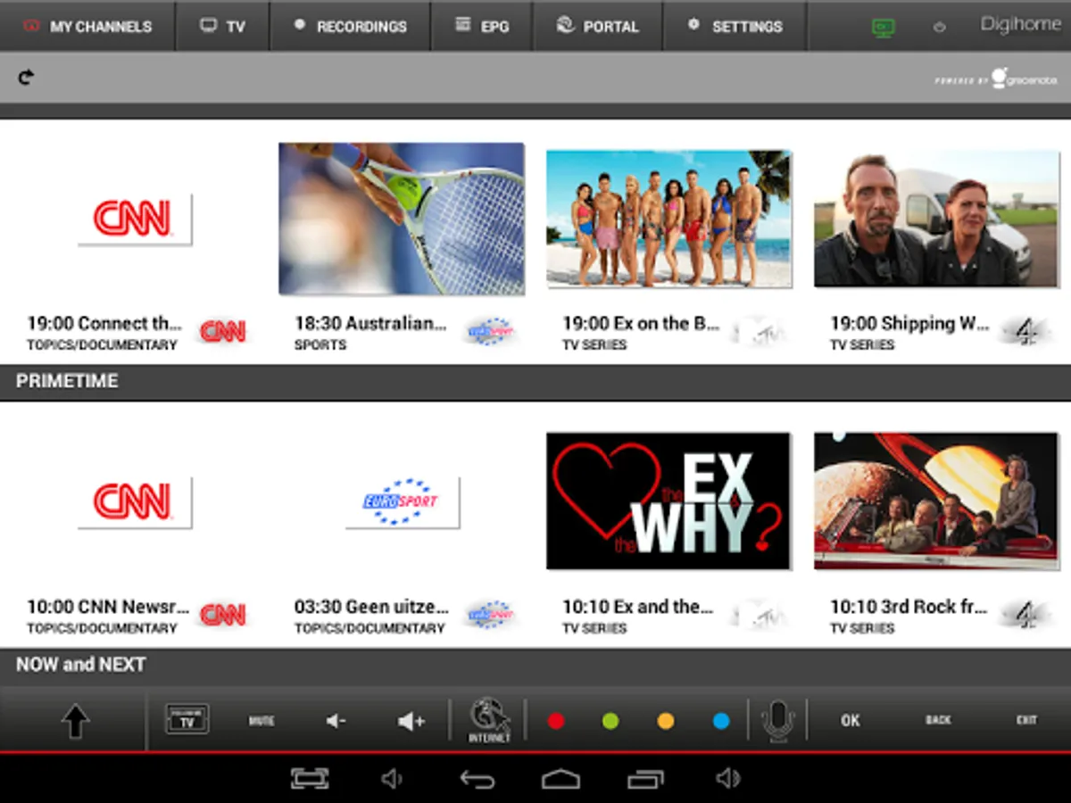 • View broadcasts on TV, prime time info, popular applications and recommended contents for you.