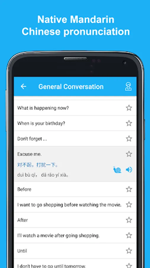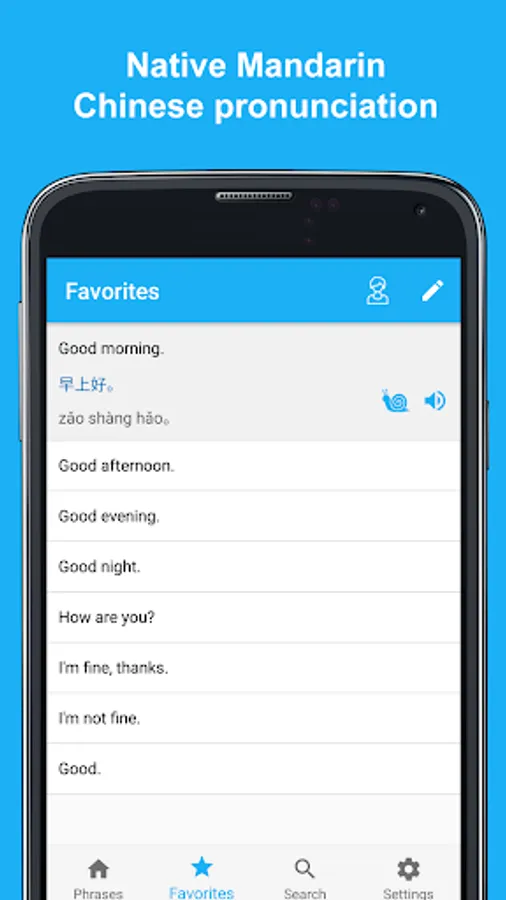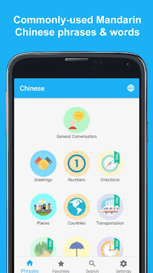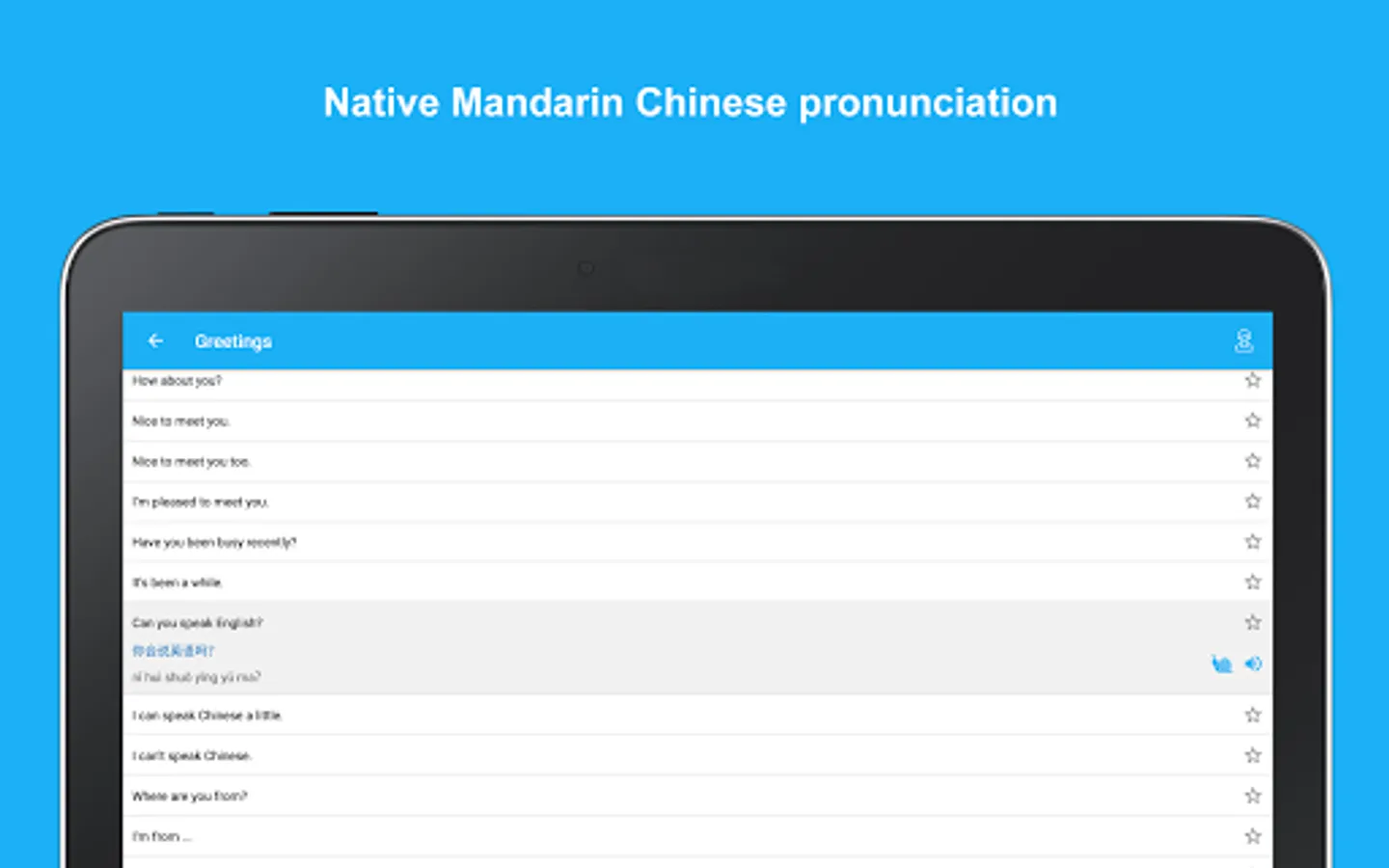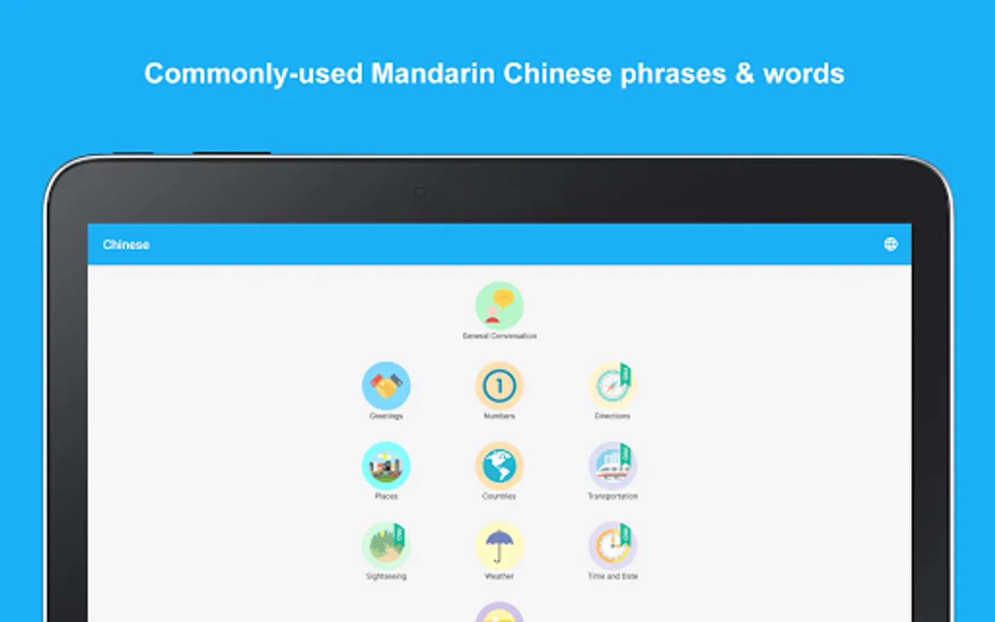 Learn Chinese Mandarin 2000+ commonly used phrases and words. Start to speak Chinese Mandarin in 10 minutes with native pronunciation and Pinyin. Useful app for travelers visiting China.