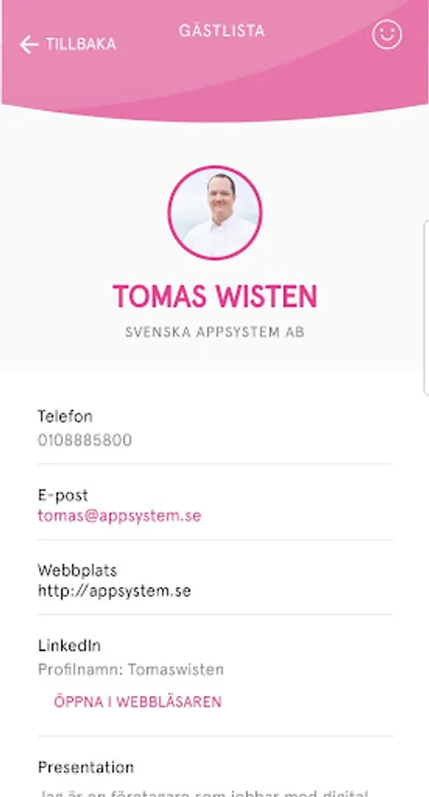 Sundsvall Business Awards is Sundsvall's annual business gala. You can save your ticket in the app, interact with other guests and get information for the galan. You can let other guests see more information about you, upload a profile picture, and inform us about food allergies. You can also view information about other guests and easily find your table. Welcome!