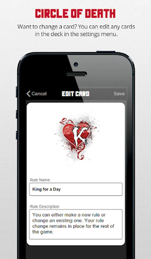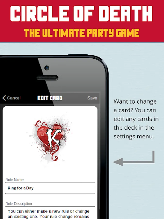 The game comes with a standard set of rules based on the classic game, but you can easily edit them in the settings. The standard Circle of Death rules are:
