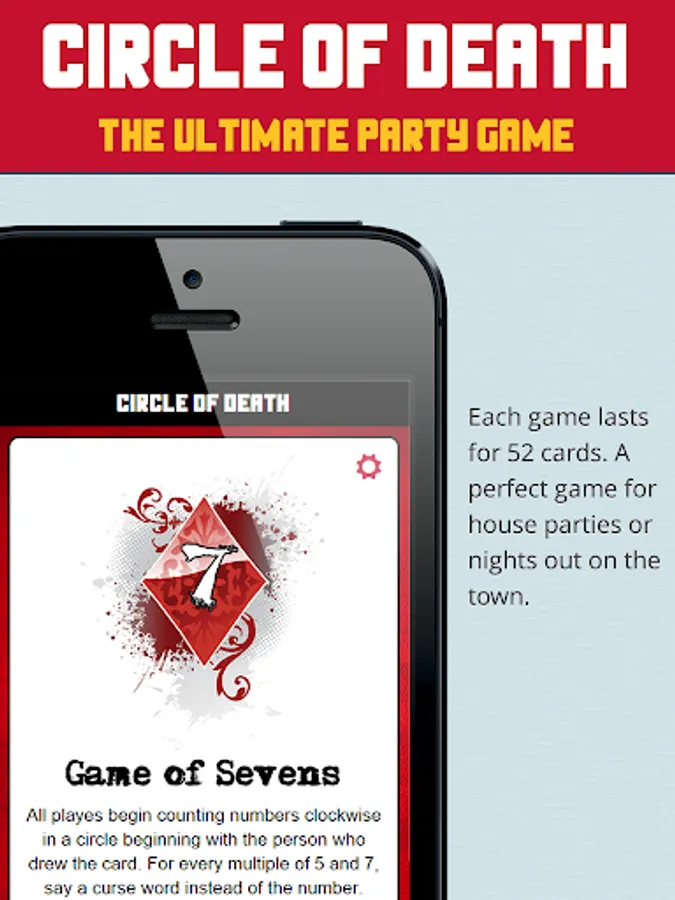 The classic card-based drinking game Circle of Death goes by many names in dorm rooms, bars and house parties around the world: King's Cup, Waterfall, Ring of Fire. Gather some friends, fill up your cups and sit in a circle to play this lively and fun drinking game.