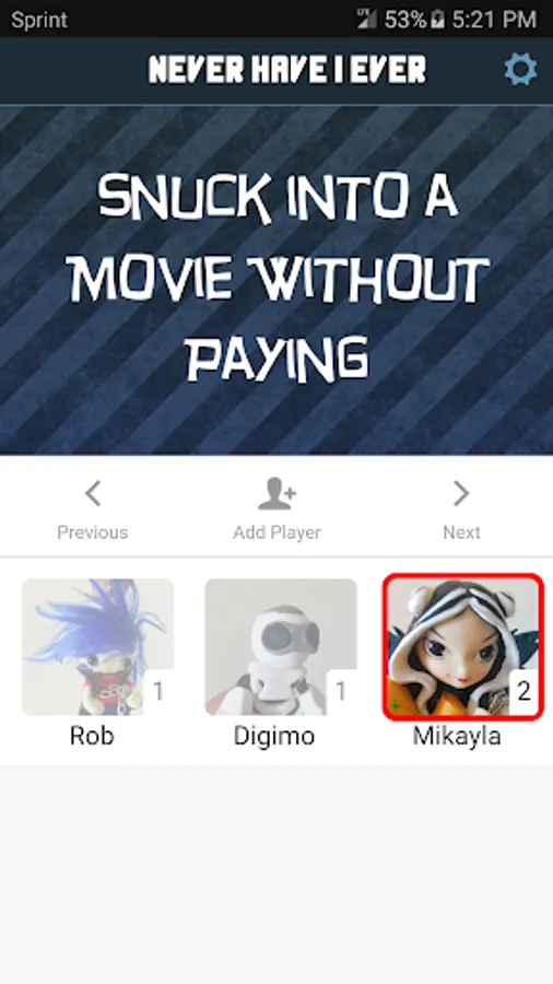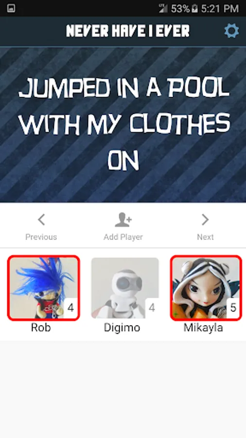 Click through statements within the game reading never have I ever before each (such as "Never Have I Ever ... Played Strip Poker". Any players who have done as the statement reads, takes a drink and is marked within the game. At the conclusion of the game, the app will present awards to players based on what they have and haven't done.