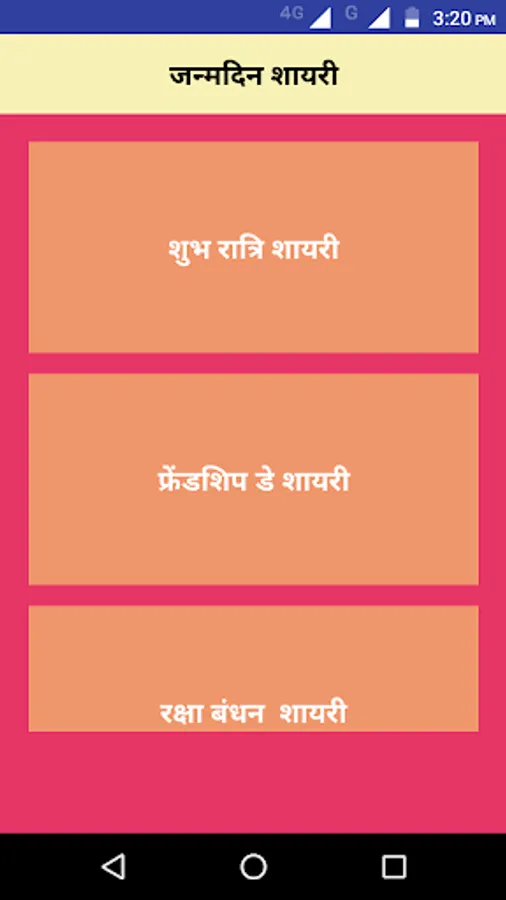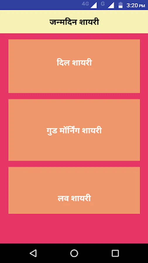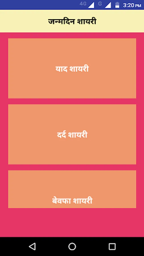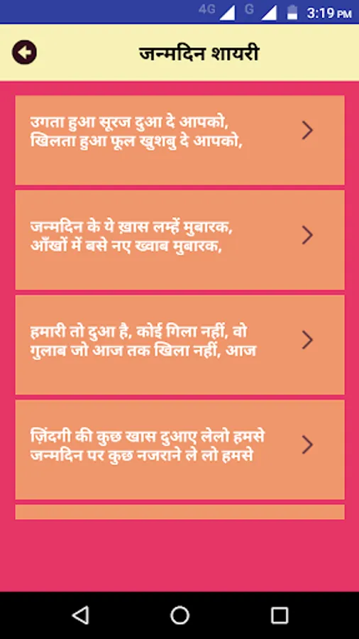 Birthday Shayari app has the following categories of contents: