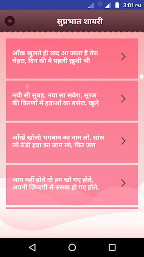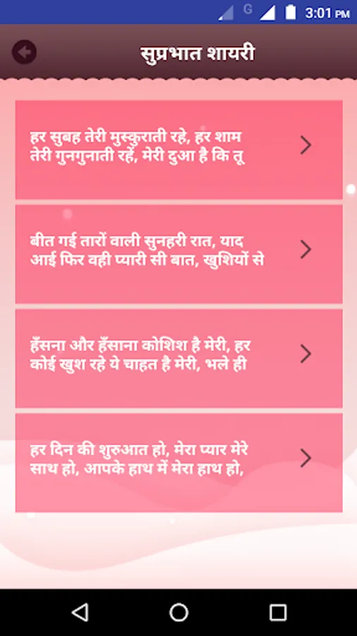 Under this app you can find well categorized collection of Suprabhat Shayari SMS, Good Morning Status and Good Morning messages which you can share with your friends.