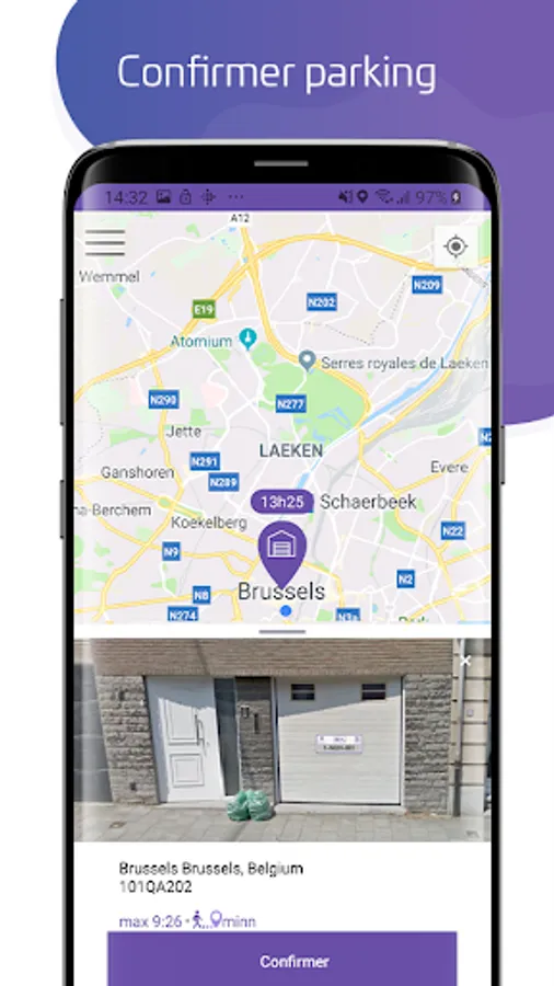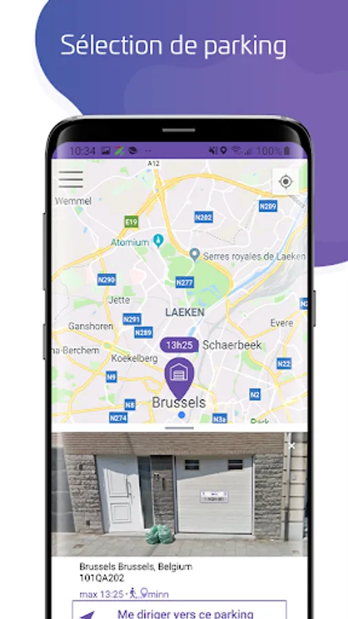 Visualisez en un coup d'œil sur la map les écrans disponibles, parquez-vous devant celui de votre choix et, toujours avec l'application, faites apparaître le numéro de plaque de votre voiture en 2 clics.